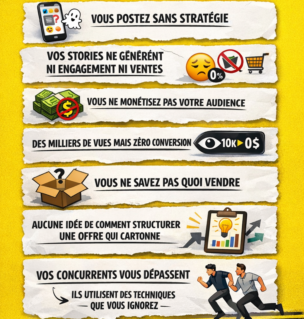 Les 5 types de stories à poster chaque jour. La méthode du “Story Selling” et scripts de vente prêts à l’emploi.